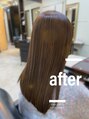 METEO酸熱トリートメントとAujuaトリートメントで髪の毛補修中ホームケアでPLT01レブリン酸とPPT02を使って頂いています。ホームケアをしっかりしていただければ酸熱トリートメントの効果も長持ちいたします。