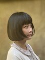 マチルダボブをイージーエレガンスに合わせて、わざとアウトラインをザクザクとカット。前髪をちょっと広めにパッツンと。