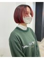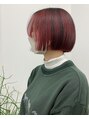 コントラストをつけて赤を入れることでファッションにも馴染みやすいです!福岡 天神 薬院 今泉 福岡美容室 天神美容室 薬院美容室 今泉美容室 半個室 半個室美容室 ボブ 切りっぱなし デザインカラー レッドカラー 赤髪