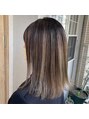 ハイライトをいれた筋感、コントラストを強調したスタイルです。全体はグレージュ系、明るい髪色が好きなかたへおすすめです。