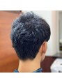 前髪は眉毛の上くらいでサイドは耳出して後ろはハサミで自然に厚刈りで仕上げてあります。全体すきは多めで束感を出して作っています。