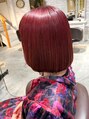 弱酸性縮毛矯正した後にピンクカラーにしました。ピンクは色落ちが早いため、最初濃いめに設定しています。