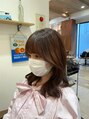 耳前とトップだけレイヤーをいれたタプッと韓国ミディアム顔周りも作り下ろしてる時も巻いた時も可愛いスタイルです!