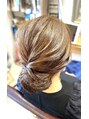 下目にシニヨンを作って、派手過ぎず大人しめにフォーマルなスタイルに仕上げました。
