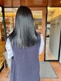カラーはトレンドのブルーブラックで☆カットは切りっぱなし切りっぱなしのラウンドワンレンで☆トリートメントは全国の美容室の中で1%しか取り扱えない希少なBYKALTE髪質改善トリートメントで驚きの艶と輝きを♪
