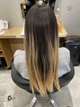 根本のプリンが目立ちにくいようにエアータッチバレイヤージュでグラデーションに!ワンカールやストレートでもデザインが出てくるようにしているので家でも再現性が高くできます