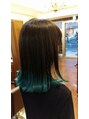 伸ばしかけミディアム 毛先裾カラー ライトブルー/福島市