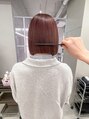切りっぱなしボブ×ピンクブラウン。ブリーチしている髪に染めています!