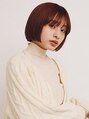 プツンとしたラインのゆるやかな前上がりボブ。前下がりよりも柔らかい印象になり、可愛らしさやラフな雰囲気が出るスタイルになります。前髪は長めのシースルーでアンニュイな雰囲気に。カラーは秋冬っぽい暖色のブラッドオレンジに。