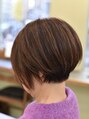 ヘアカラーとウィービングによるハイライトで動きを与えたショートボブです。襟足に浮いて流れる強い癖がありますが、思い切って切ってしまうという選択もあります。