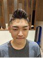 当初はハードモヒカンにしたいというプランでしたのでフロントからバックまでのセンターのモヒカンラインは幅5cm程のベースをしっかり取りました。シルエットと質感は彼に似合うようにアレンジしました。