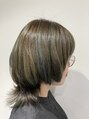白髪をぼかす為に全体にハイライトを入れて上からカラーをのせました。全体が明るくなるので出てきた白髪も目立たないです。