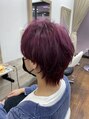 ネオウルフカットにワインレッドカラーで仕上げました!デザイン性を兼ね備えたネオウルフ、深みのあるワインレッドでセクシーさがアップ!注意点として、ブリーチ必須の施術なので担当のスタイリストとご相談ください!