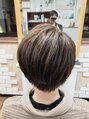 少しボーイッシュながらも女性らしい丸いフォルムで小顔に見えるハンサムショート♪柔らかい雰囲気を出すために明るめのマットベージュでカラー