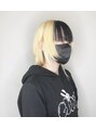 ブリーチ×フロントアクセントカラー×ウルフカットウルフカット後根元ブリーチ後、時間差でフロントアクセントカラーをブラックに仕上げました