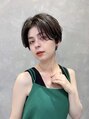 大人かっこいい×前下がりショート斜めに流せる前髪、首が綺麗にみえる襟足、前下がりのシルエットのショートです。カラーはオレンジ味を抑え透明感を出したアッシュ系カラーです。クリームワックスで簡単にスタイリングできます。