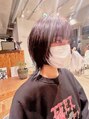 ミディアムマッシュウルフ ベース丸みとくびれが作れるようにバランスを見ながらレイヤーを!毛先は先細りになるように軽くして柔らかい毛束感を。カラーはネイビーブルーでおしゃれにくーるに
