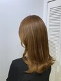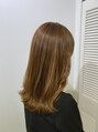 ブリーチ無しで明るめベージュに仕上げました!根元と毛先が繋がるように、細かくこだわって塗り分けます◎カットはふんわり感が出るようなミディアムレイヤーです。