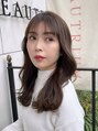 ゆったりとした大きなカール感で大人のロングヘアに。前髪はコンパクトに軽さを出し、全体が重く見えない様にバランスを。大きめのアイロンで巻くか、中間からパーマをかけてあげるとスタイリングがやりやすくなります。