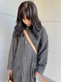 顔まわりにたっぷりレイヤーの入った重ためロングスタイル!艶っぽいオリーブカラーが冬っぽくてかわいいです!