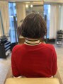 伸ばしかけのボブスタイルもパツッとラインを残してパーマをかければオシャレに。、