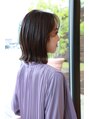 切りっぱなしボブをストレートアイロンで仕上げました。少し外ハネにすることがポイントです。
