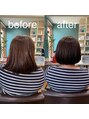 毛量が多いと感じる方におすすめのボブ。ブラシやアイロンを使わなくてもドライヤーのみで丸みのある内巻きシルエットになるようにカットしています。重過ぎず軽過ぎずなボブです。