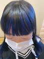 ダークネイビーブルーのグラデーションカラー。ブリーチで周りと差をつけたカラーを。