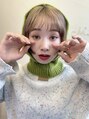 ハイトーンのボブはさらっとしたストレートのスタイリングで。ぷつっとしたラインを出しても、顔周りに動きをつけても可愛い◎フードから除く髪もお洒落に見えるように。