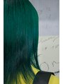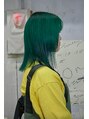 ブリーチ後、サワーグリーンをオンカラー。ブルーをミックスしているので色落ちも綺麗です。
