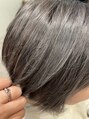Wカラーワンブリーチの上から暗めのバイオレットグレーをのせました。暗めに感じますが透け感があって綺麗な色。色落ちも楽しめます。