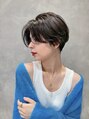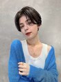 大人かっこいい×前下がりショート斜めに流せる前髪、首が綺麗にみえる襟足、前下がりのシルエットのショートです。カラーはオレンジ味を抑え透明感を出したアッシュ系カラーです。クリームワックスで簡単にスタイリングできます。