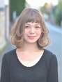 短めにつくった重めバングがポイント☆アッシュ系のノーブルカラーとふわっと丸みのあるバルーンカールでハイトーンでも柔らかい優しい印象に☆