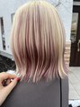 ホワイト×ピンクのバーコードカラーです!ブリーチのリタッチは1.5ヶ月から2ヶ月がオススメ!