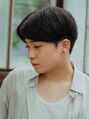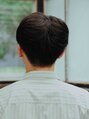 髪型はソフトマッシュなので前髪を上げることも下げることもできます。必要に応じて、オフィススタイルやカジュアルスタイルにセットできます。前髪は6:4で分けて大人っぽいスタイルに。カラーは暗めのブラウンでナチュラルで優しい印象に。