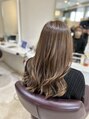 ワンブリーチでできるナチュラルハイライトスタイル。ケア剤をブリーチにしっかり入れているので、毛先までツヤツヤです。色はモカベージュで柔らかく。