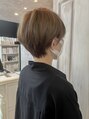 ハイトーン丸みショート。襟足はスッキリなショートスタイルです。冬ショートおすすめです!!!ブリーチありなハイトーンカラー。ミルクティーベージュです。柔らかさもあって透明感もバッチリなカラーです。