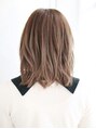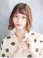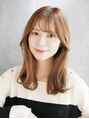 明るめの透け感ベージュに薄め眉バングに細めのミックスカールです。顎ラインから落ちるカールは小顔効果を出し、女性に人気のカールスタイルになります。