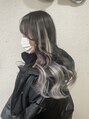顔周りの高めの位置からインナーハイライトをエクステで付けてあります。巻いてもカッコよく、ストレートでもしっかり見えるデザインです。シルバーとラベンダーグレーの2色で立体感もプラス☆