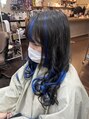 フロント・サイド・襟足インナーにブルーを入れたエクステ
