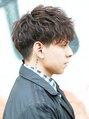 サイドとバックをスッキリと刈り上げ、前髪は眉に掛かるくらいのマッシュスタイル!動きを出しやすくカットする事によって、柔らかいフェザー質感に!!