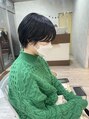 ショートカット×オリーブブラックです!今回はカットは伸びた部分を調節して顔周りを作りました!横から見たフォルムが可愛い♪普段はブルーブラックが多いお客様ですが、オシャレな質感が好きな為少し変えてオリーブもプラスしてみました!