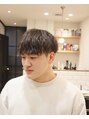 アイロンでr緩めのツイストスパイラルにナチュラルにセット。やりすぎないくらいが自然でカッコイイスタイル。