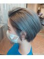 長めバングで大人っぽさを演出!2.3回ブリーチを繰り返しているので、ホワイティーアッシュにバイオレットをプラスして透け感のあるハイトーンショートに!