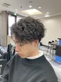 スパイラル・ツイストパーマ!!パートをつけた少し強めの個性的な感じで、サイドはツーブロックで今風に、襟足は刈り上げてスッキリと男性らしく。