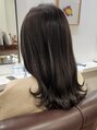 深くくすませたブルーグレージュ落ち着いたお色味ですが光にあたった時の透明感は◎です!