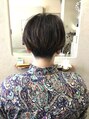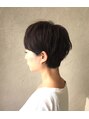 えりあしを刈り上げたハンサムショート。グリーンのインナーカラーが入っています。