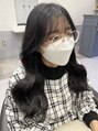 韓国カラーといえばブルーブラック!!!髪の毛をツヤツヤに見せてくれるしお肌も白く見えちゃうオススメカラーです!!2wayにできる薄めのシースルーバングと顔周りを作ってあげてヨシンモリでより韓国っぽく♪