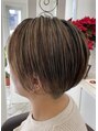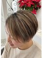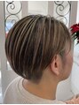 ガイドラインは3ミリに刈り上げ、長さは残して全体の量感を軽くカット♪今のカラーの上から全体に細かくハイライトをプラス♪