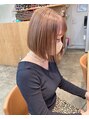 ハイライトが入っているスタイルから、全頭ブリーチでベージュヘアに!パツっと切りっぱなしのボブのカットラインこだわります!